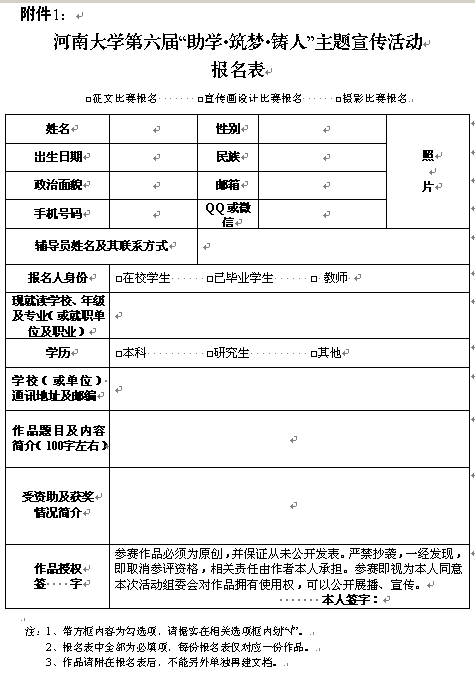 1.第六届“助学·筑梦·铸人”主题征文系列活动报名表